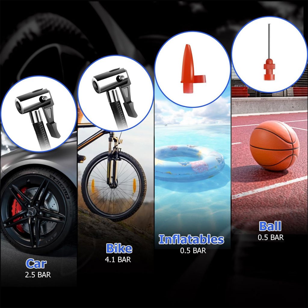Utilisation polyvalente : voitures, motos, vélos, ballons et équipements gonflables.