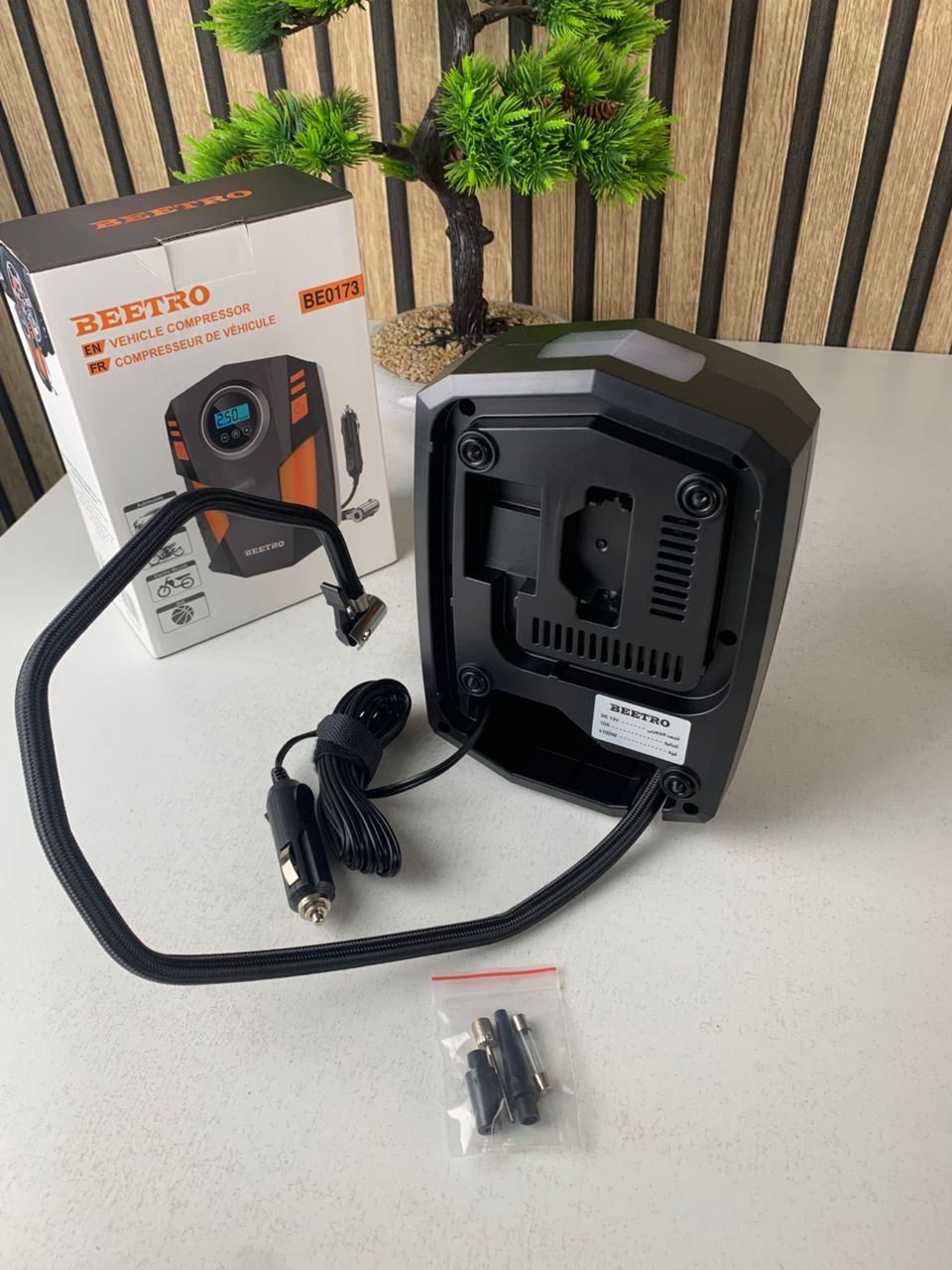 يتم توصيله مباشرة بمقبس 12V، يبدأ النفخ تلقائيًا ويتوقف عند الوصول للضغط المحدد.