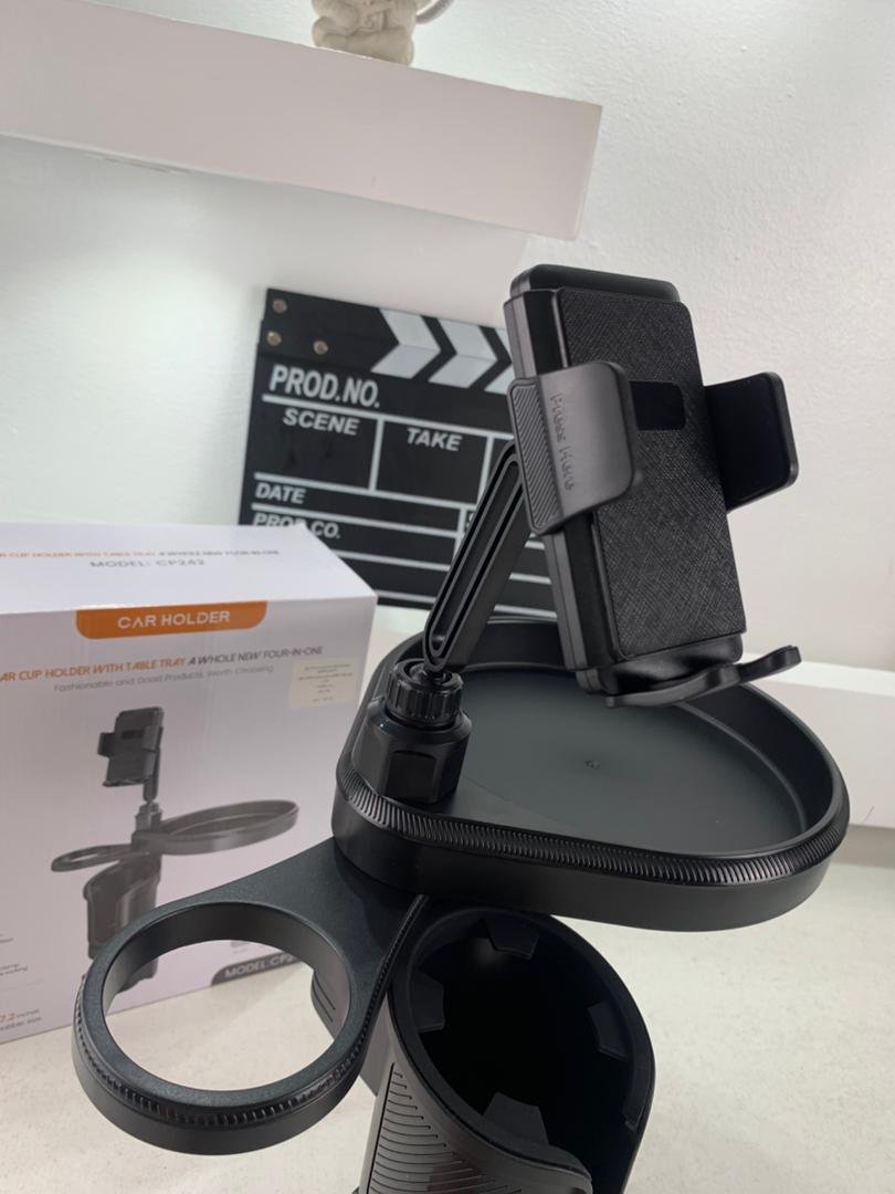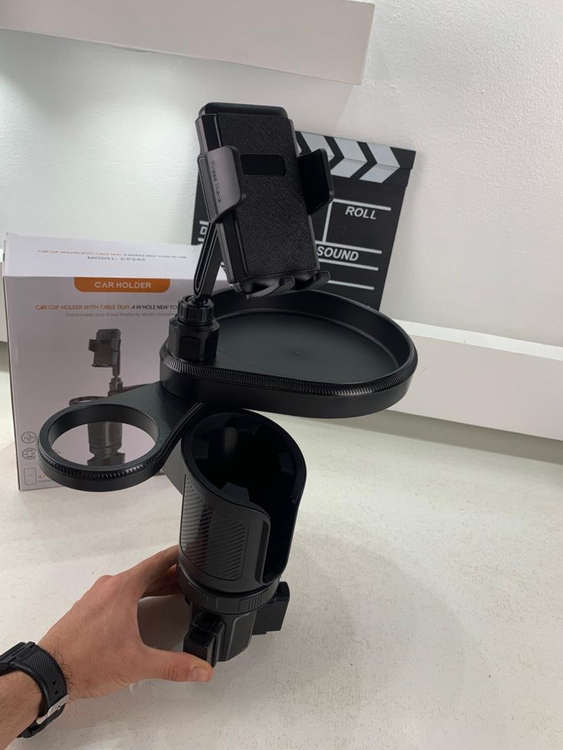 وظيفة 4 في 1: حامل أكواب، حامل هاتف، حامل تابلات ومساحة تنظيمBase extensible et ajustable compatible avec la plupart des voitures