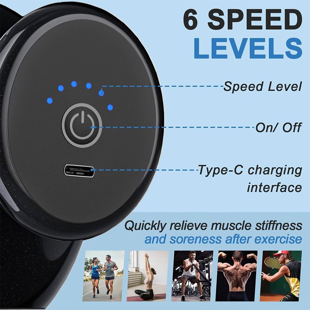 4 têtes + 6 vitesses réglables – De 1200 à 2500 tours/minute pour cibler chaque groupe musculaire selon le besoin.