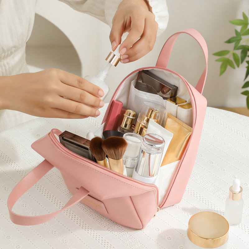Son design structuré et sa poignée arrière rendent son transport facile, tandis que sa matière en faux cuir offre une texture raffinée et une excellente durabilité. Que ce soit pour un usage quotidien ou en voyage, cette pochette est votre alliée beauté indispensable.
